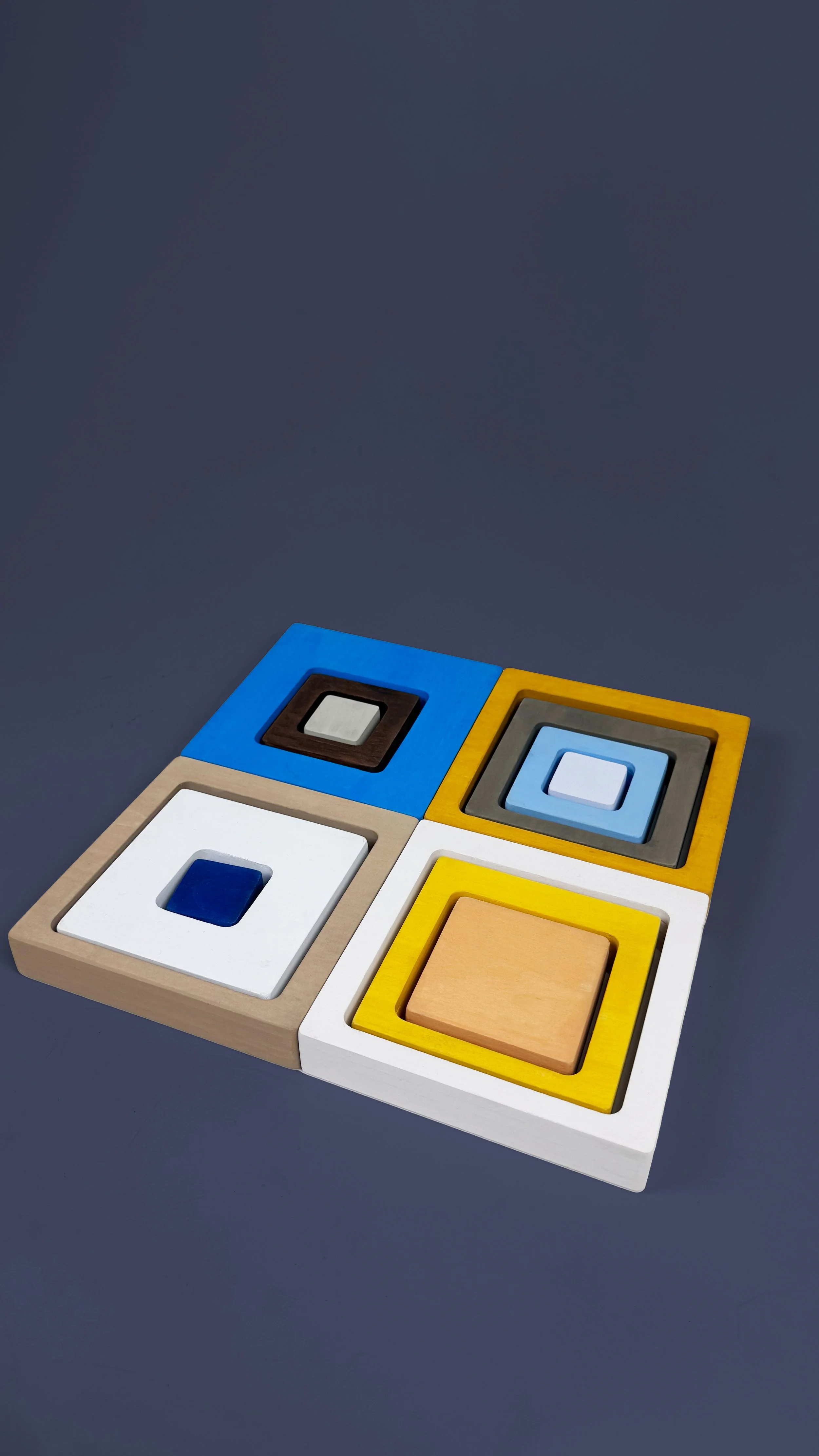 Colourwise Cubes is a conceptual toy design project that explores the intersection of play, art, and inclusive design. Drawing inspiration from Raduga Grëz’s natural, handcrafted toy philosophy alongside Montessori and Waldorf educational principles, the project reimagines children’s building blocks as sculptural objects that encourage open-ended play, creativity, and tactile learning. Influenced by Joseph Albers’ Homage to the Square, the forms and palettes treat colour and shape as both educational tools and visual expression. Designed with colourblind accessibility in mind, the cubes incorporate carefully considered palettes, engraved colour cues, and non-toxic finishes to ensure inclusivity while maintaining a refined, natural aesthetic. Crafted from sustainable materials, the project positions toys as enduring, artful objects that support child-centered learning and thoughtfully integrate into the home.